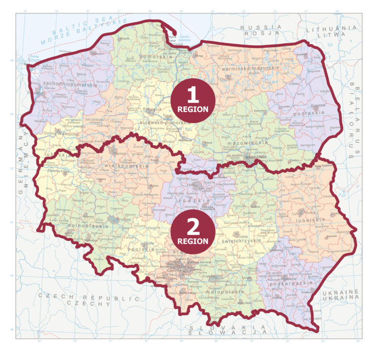Działamy w dwóch regionach sprzedażowych – północnym i południowym.